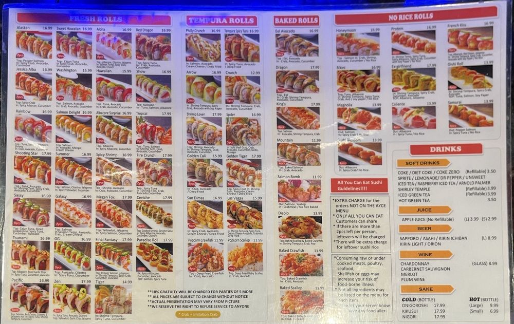 Show Sushi in San Dimas offers an exceptional dining experience for sushi lovers. With a variety of options for both AYCE and a la carte, this sushi bar stands out for its quality and freshness. Customers rave about the top-notch fish quality, authentic flavors, and well-balanced dishes. The restaurant's modern vibe, attentive service, and comfortable ambiance make it a perfect spot for a casual lunch or dinner. Highlights include the Jessica albacore, dragon roll, San Dimas, shooting star, Las Vegas, zen, and DIABLO rolls. The carpaccios, signature sushi, sashimi, and gyozas are also highly recommended. Show Sushi's value for money, diverse seafood selection, and efficient service make it a must-visit spot for sushi aficionados.